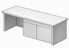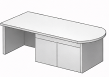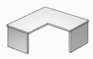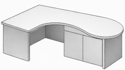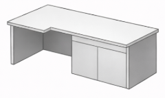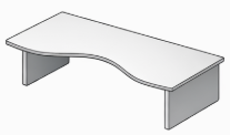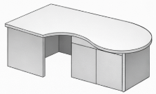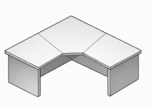 Offre une surface de travail plus grande et plus confortable que le bureau droit. Cependant il est plus encombrant que ce dernier. Il peut autant être utilisé dans un bureau individuel que partagé.