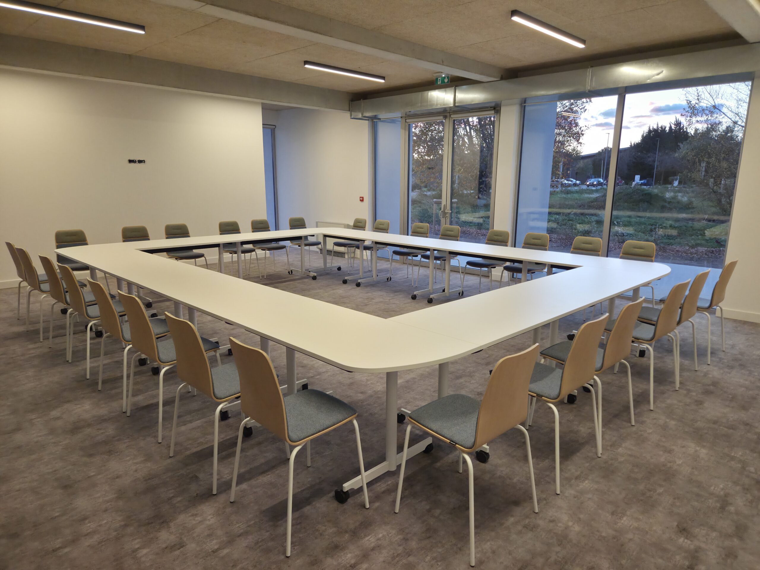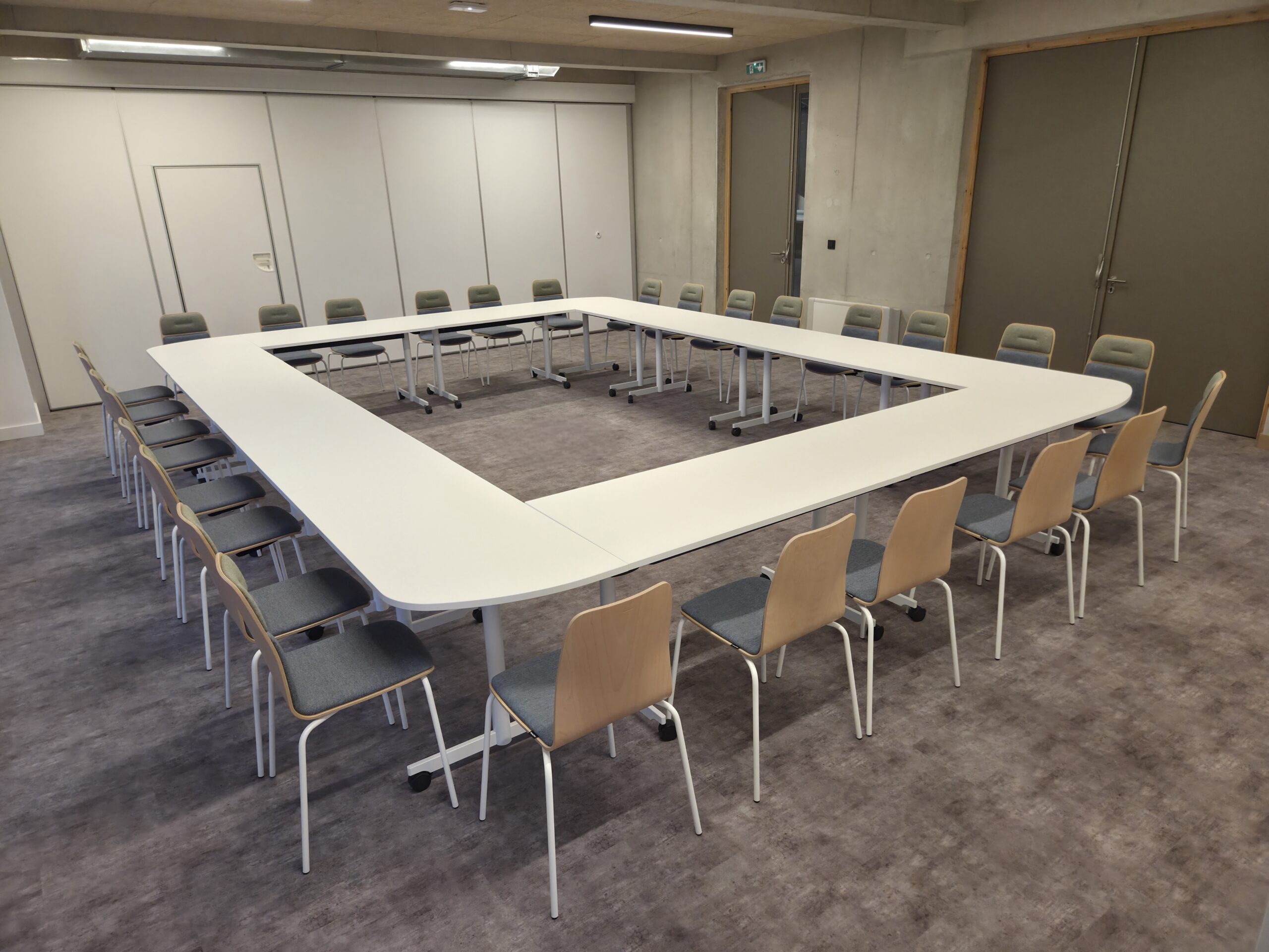 Nous créons des espaces de réunion modulables et fonctionnels, adaptés à tous vos besoins. Nos tables modulables et nos différents modèles de chaises et fauteuils permettent une grande flexibilité et de nombreuses dispositions possibles. Que ce soit pour des réunions formelles, des ateliers collaboratifs ou des moments de détente, nos aménagements s’adaptent à tous types de salles et d’activités.